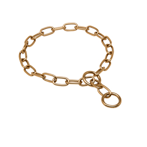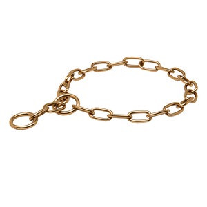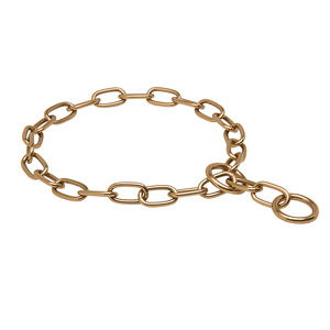 This item consists of a round chain with 1/9 inches (3.0 mm) wire gauge and two O-rings. The chain runs well through the ring thanks to the medium sized links. So, you can quickly tighten the collar and immediately release it to get sharp correction. This feature is especially crucial if you are working with your dog on behavior correction. Also, thanks to the link size, this chain collar is ideal both for small and large dogs.