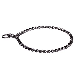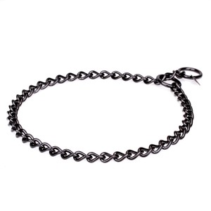 This chain collar comes in several sizes and will do for dogs with weight up to 121 lbs (55 kg). Please measure the length of your dog's neck circumference and add from 2 to 3 inches to determine an appropriate collar length. Measurements are made from the end of one ring to end of another ring. See the chart to find the size your dog needs.